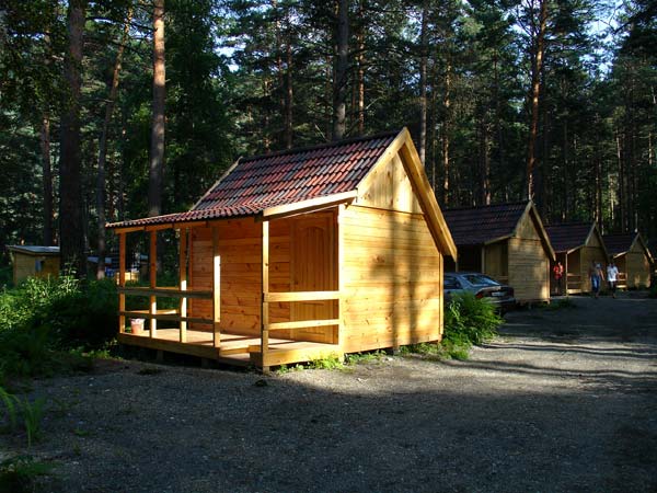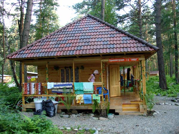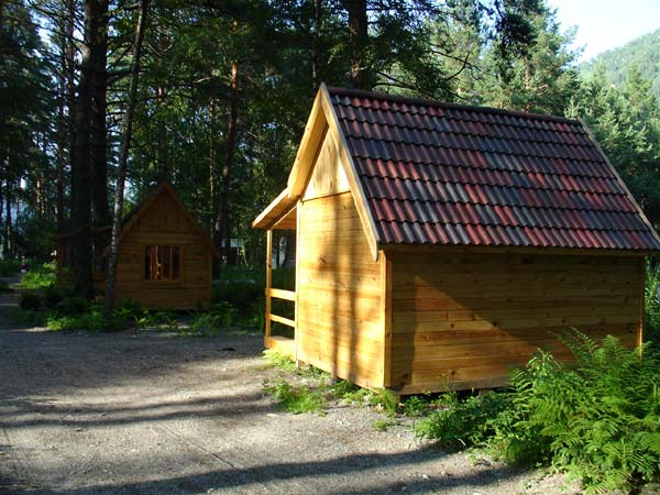 Отдыхающие размещаются в деревянных летних домиках с верандами по 2-3 человека. Всего на базе восемь домиков (16 основных мест и 8 дополнительных). В домики проведено электричество, из мебели имеется 2 кровати (одна чуть шире другой), столик и шкаф для одежды. Душевые с горячей водой и туалеты находятся на территории. Есть возможность поставить машину прямо возле домика.